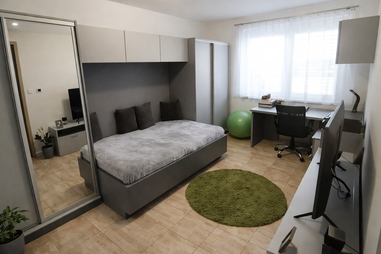 Hotový nábytek dovezeme, odborně namontujeme a pečlivě doladíme na místě. Výsledkem je čistě dokončený interiér připravený k okamžitému používání.