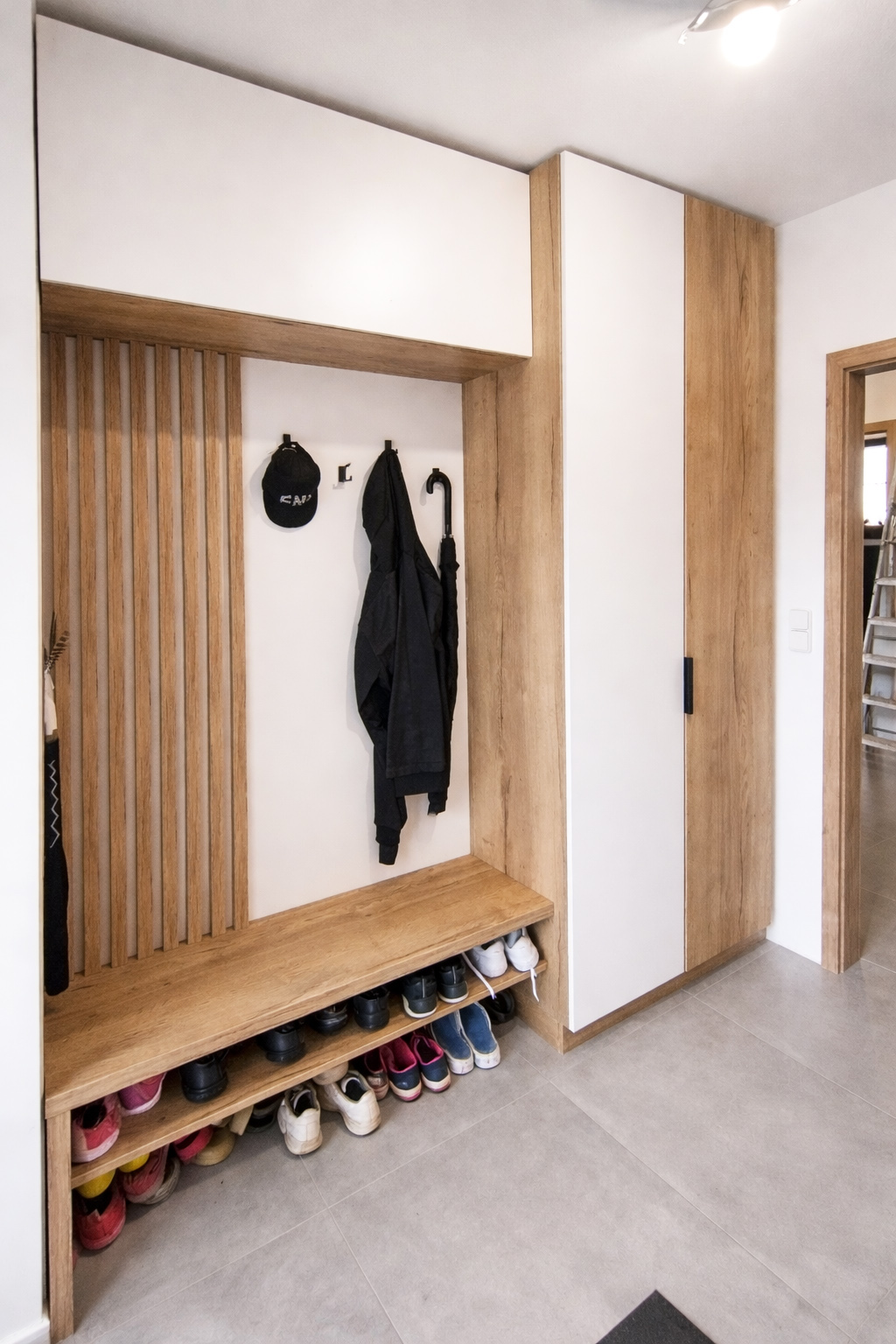 Připravíme návrh řešení a přesně zaměříme prostor. Hledáme ideální poměr mezi estetikou, praktičností, úložným místem a každodenním komfortem.