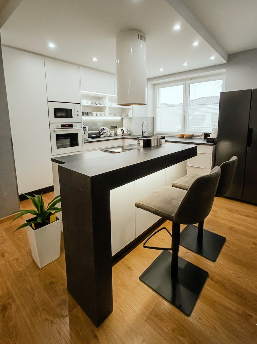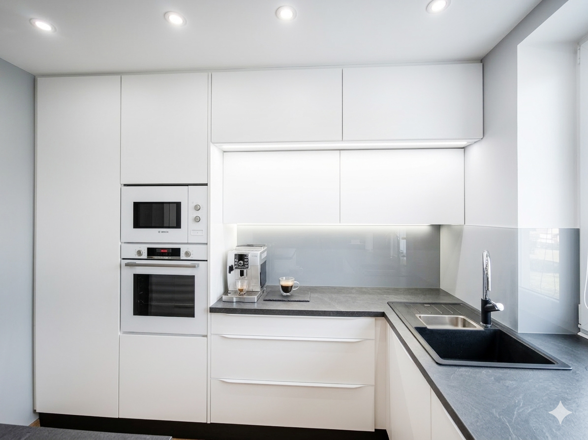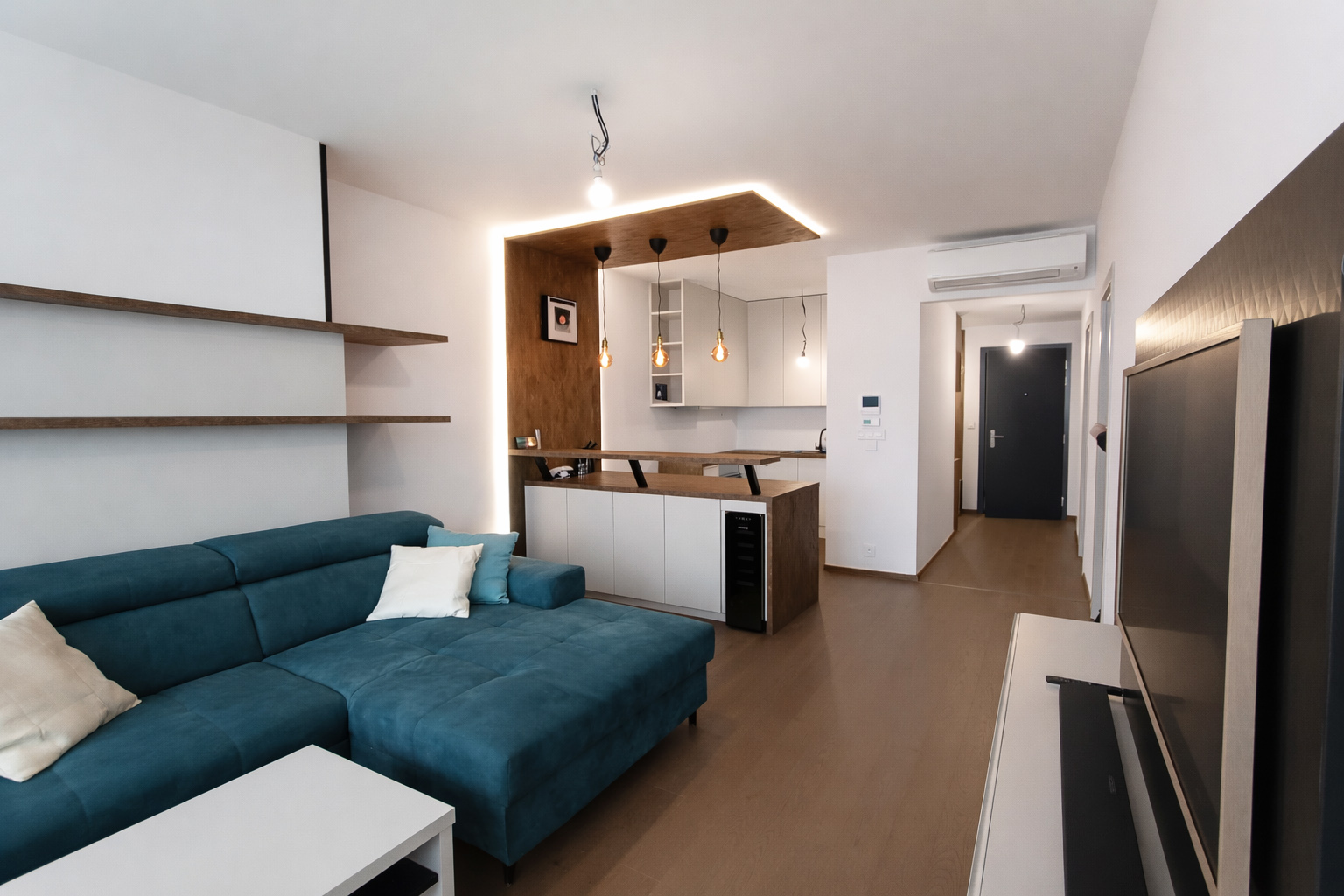 Hotový nábytek dovezeme, odborně namontujeme a pečlivě doladíme na místě. Výsledkem je čistě dokončený interiér připravený k okamžitému používání.